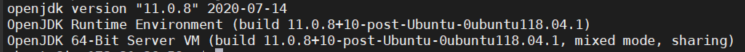 $sudo apt install openjdk-11-jdk $java -version openjdk version "11.0.8" 2020-07-14 OpenJDK Runtime Environment (build 11.0.8+10-post-Ubuntu-0ubuntu118.04.1) OpenJDK 64-Bit Server VM (build 11.0.8+10-post-Ubuntu-0ubuntu118.04.1, mixed mode, sharing)아래와 같은 에러가 나면 시도해세요.