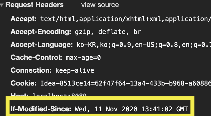 이유는 브라우저가 가지고 있는 마지막 수정시간과 서버에서의 수정시간을 비교해서